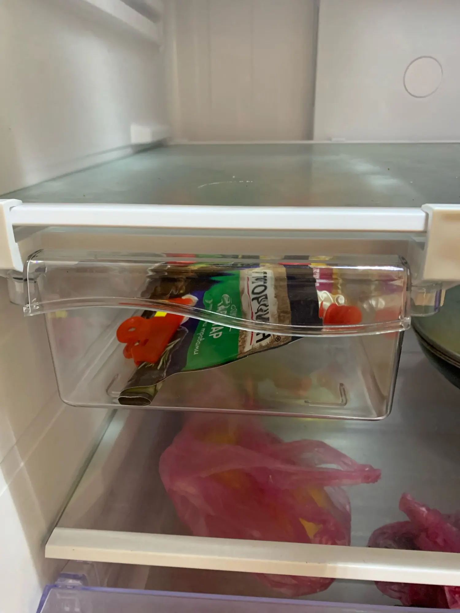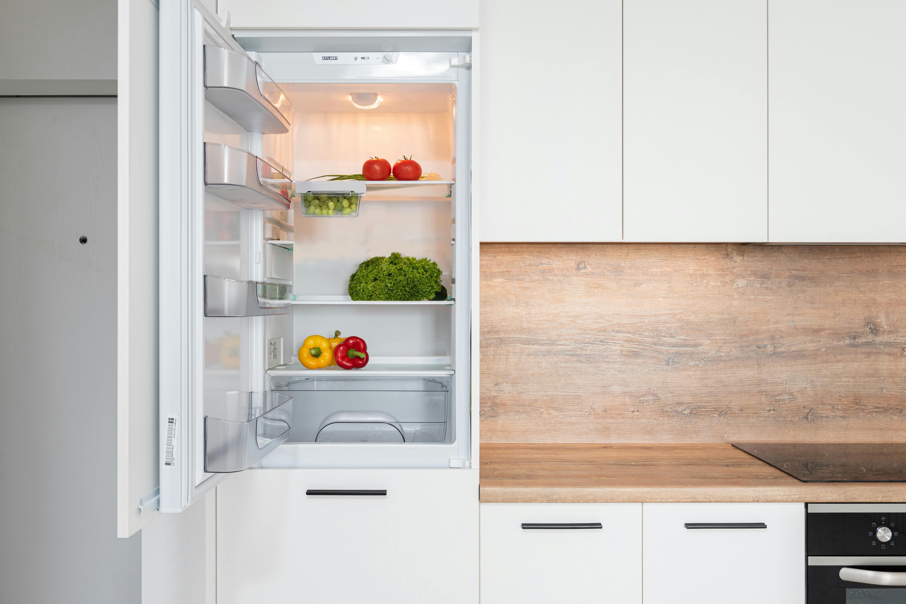 Space-Saving Design: Pull-out drawers slide under shelves to free up fridge space.